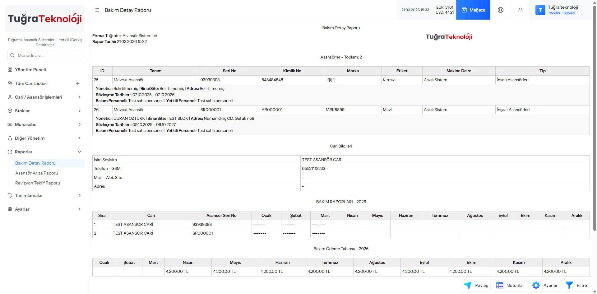 Tüm müşterilerinizin cari ve asansör bilgilerini tek ekrandan yönetin.